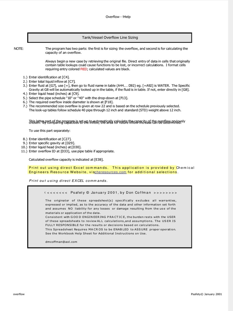 Tank Vessel Overflow Line Sizing Pdf Ethanol Chlorine